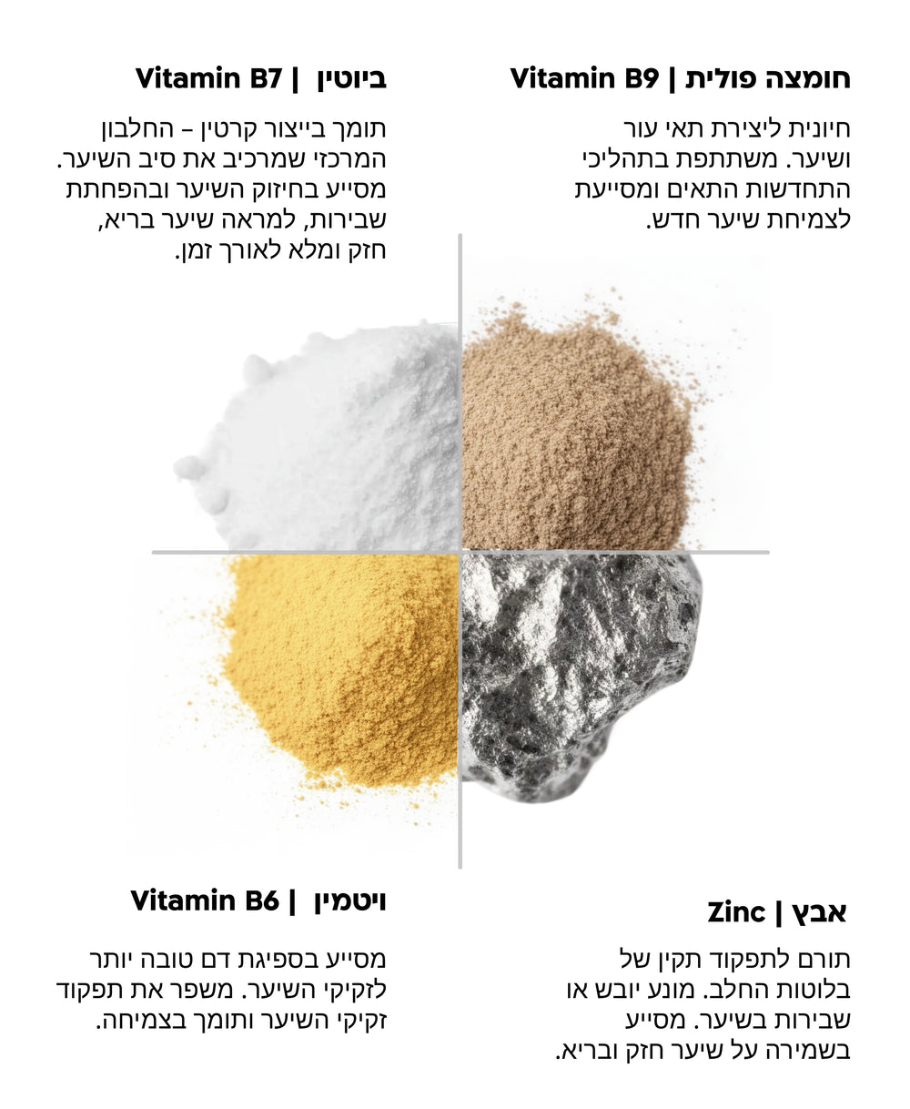 כולנו יודעות שהבסיס לשיער בריא מתחיל בתזונה, אבל בפועל קשה לשמור על אספקת ויטמינים מאוזנת - והמחסור, יחד עם סטרס ושינויים הורמונליים, מוביל לנשירה ושיער חלש.