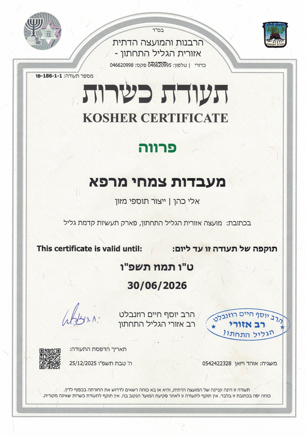הקליקו כאן תעודת כשרות